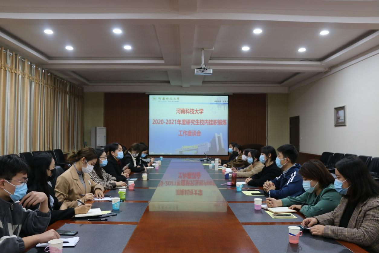 为深入了解研究生的学习生活情况,进一步做好研究生的挂职锻炼工作,11月5日下午,研工部在开元校区工科2号楼308会议室召开研究生校内挂职锻炼工作座谈会。研究生思政教育科科长陈洁及2020-2021学年挂职锻炼研究生代表参加会议。