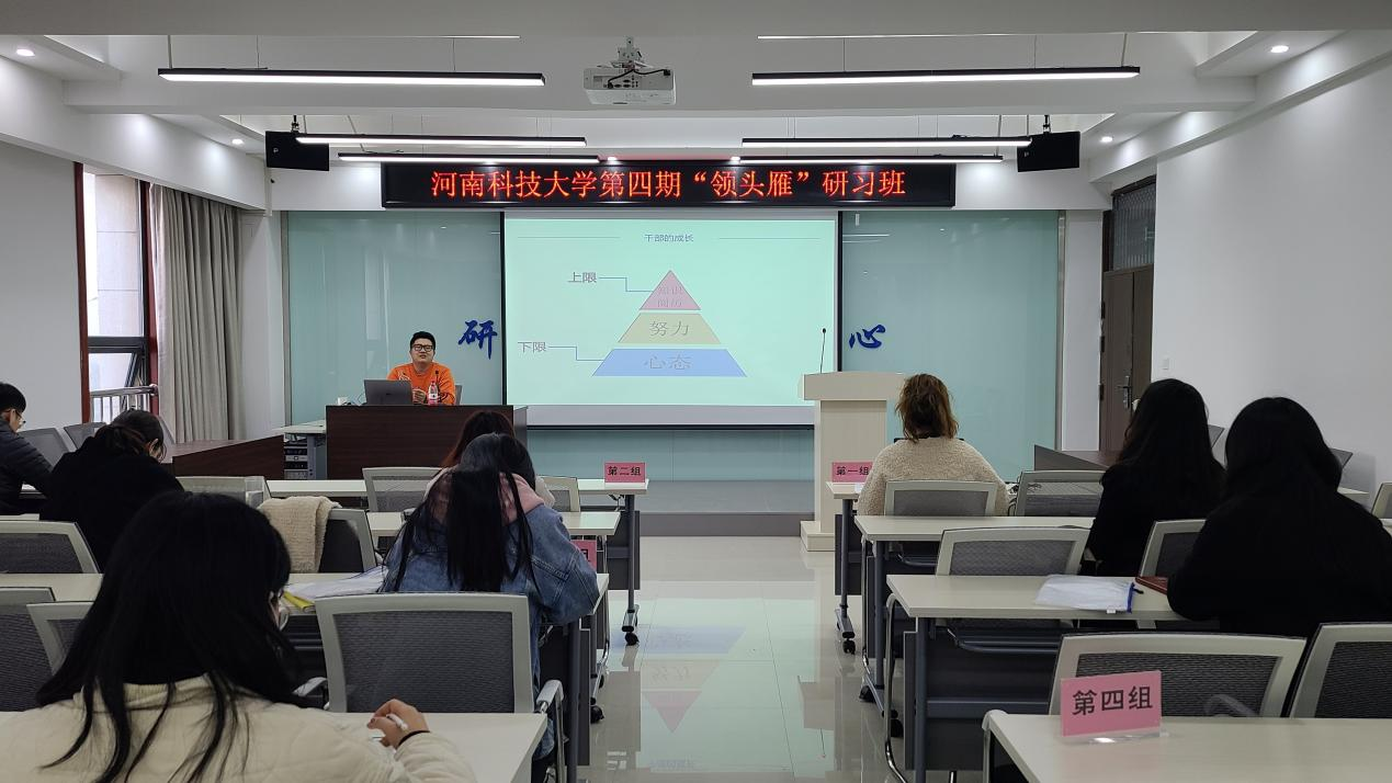 12月12日上午,河南科技大学第四期研究生“领头雁”研习班在开元校区研究生跨学科交流中心开展先锋宣讲活动。本次活动由农学院/牡丹学院2020级研究生李安然主持,第四期研究生“领头雁”研习班全体学员参加。