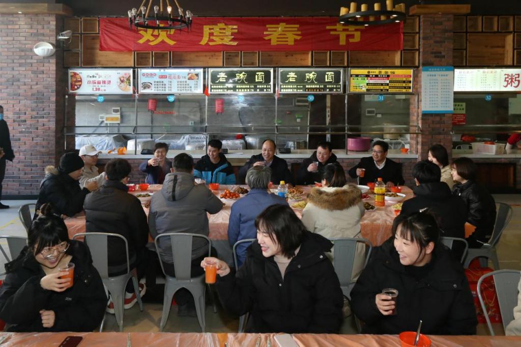 李漪与留校研究生们欢聚一堂,就餐期间欢声笑语不断,洋溢着祥和的新年气息。学校为留校研究生准备了丰盛的新年团圆饭,并送去诚挚的问候和新春的祝福。李漪向同学们送达新春的问候和新一年美好的祝愿,并叮嘱相关部门要保障服务,让同学们在学校也能感受到“家”的温暖。此外,新年期间学校贴心为留校研究生提供免费餐食,并为每位留校研究生赠送新年大礼包,让大家倍感温暖。