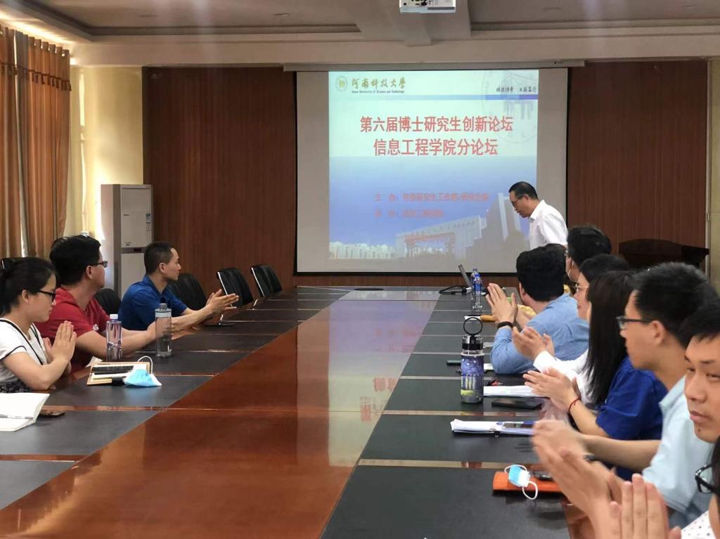 为激发博士生的学术热情,集中展示博士生最新研究成果,由党委研究生工作部/研究生院主办、信息工程学院承办的“河南科技大学第六届博士研究生创新论坛信息工程学院博士生分论坛”,于5月21日下午在工科2号楼308会议室举行。本次论坛由辅导员聂世群主持,特邀嘉宾博士生导师普杰信教授做报告,全体博士研究生参加。