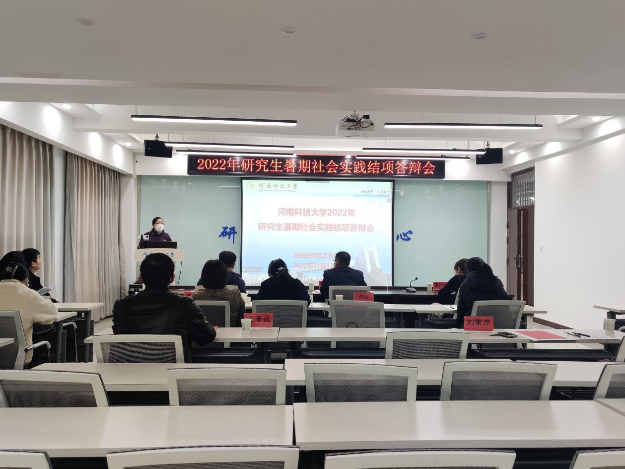 11月12日上午,2022年研究生暑期社会实践结项答辩会在开元校区研究生跨学科交流中心举行。校工会副主席张杰任评委组组长,科技处、学生工作处、数学与统计学院、物理工程学院、人文学院、护理学院相关老师为评委组成员。党委研究生工作部部长刘素芹、研究生管理科科长王泽远和各研究生暑期社会实践团队代表参加会议。会议由艺术设计学院2022级研究生陈思欣主持。