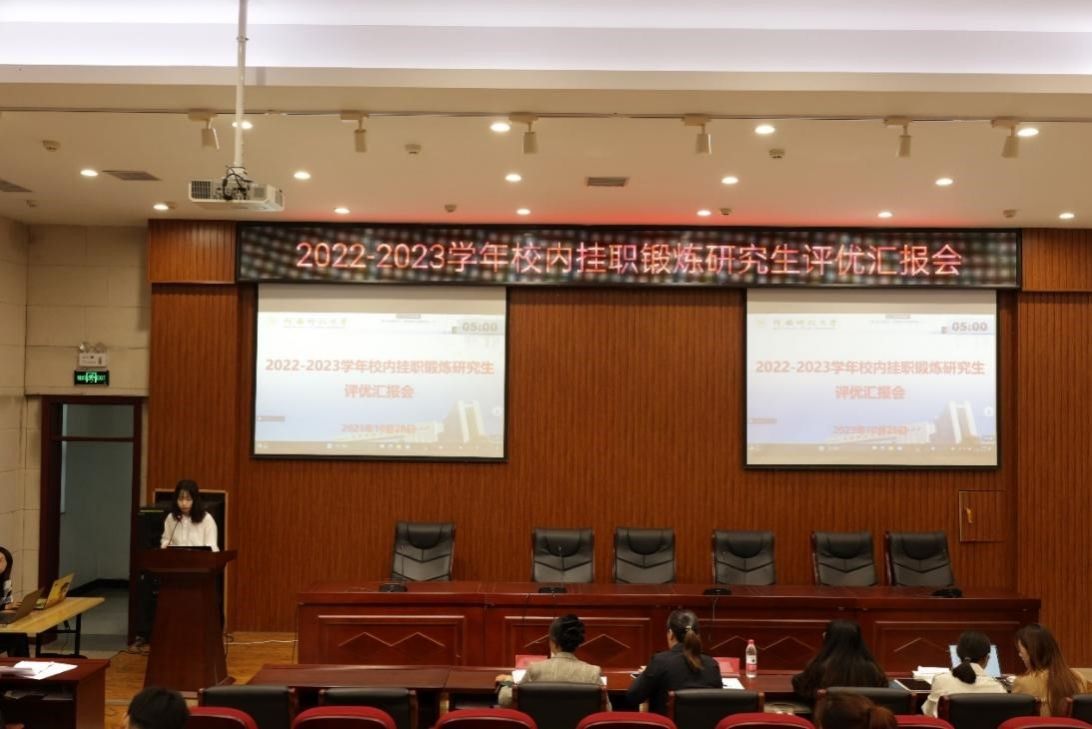 2022-2023学年挂职研究生从个人情况、挂职工作内容、存在问题及改进措施等方面进行总结汇报。汇报结束后,评委对参评研究生做出综合考核与评审,遴选优秀挂职锻炼研究生。