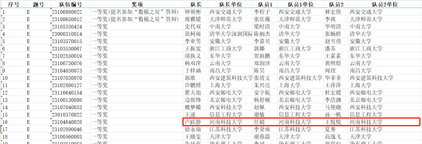 近日,由教育部学位与研究生教育发展中心指导,中国科协青少年科技中心主办,东南大学数学学院承办的第二十届“华为杯”中国研究生数学建模竞赛获奖名单公布。我校荣获全国一等奖1项,二等奖1项,三等奖6项,取得我校研究生数学建模竞赛一等奖的突破。在党委研究生工作部积极推动和数学与统计学院认真组织、精心培训下,2023年我校研究生参加此项赛事规模和获奖质量较往年均有较大提升。