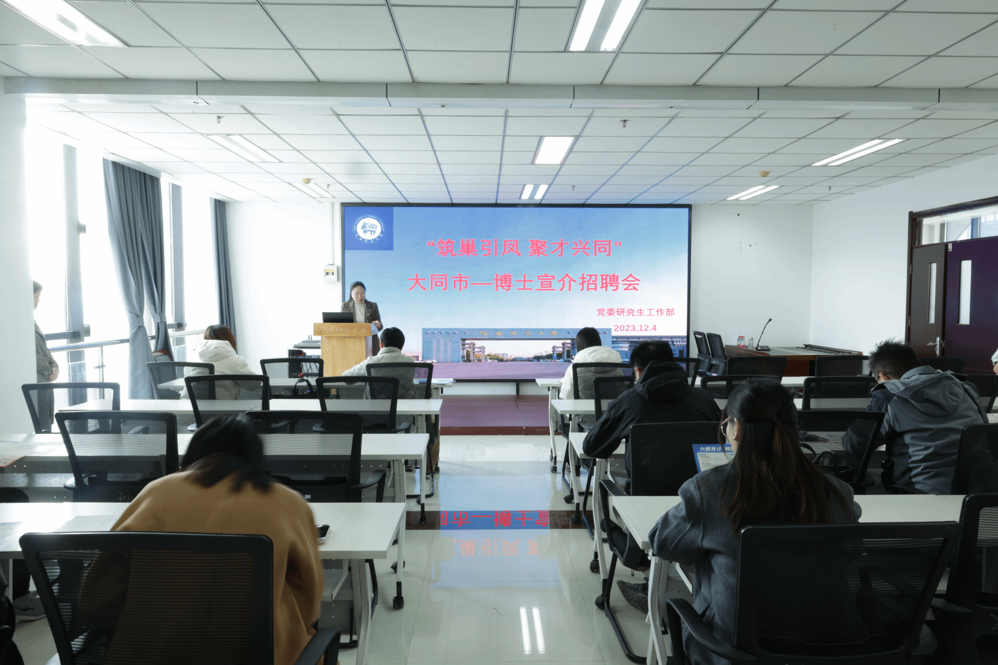 12月4日,党委研究生工作部在河南科技大学开元校区图书馆301、306召开大同市人才工作站建设座谈会暨“筑巢引凤 聚才兴同”博士宣介会,大同市科技局局长王立荣、大同市科技局成果转化科科长刘蓉、大同市人社局表彰办主任高洁、河南科技大学招生就业办公室、大学生就业创业指导中心主任姚纲、河南科技大学招生就业办公室副主任朱林、河南科技大学招生就业办公室市场招聘科科长王超、部分博士毕业生参加会议,党委研究生工作部副部长张静主持。