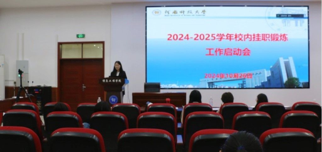 2024年10月26日下午,河南科技大学在工科二号楼610报告厅成功举办了2023-2024学年校内挂职锻炼研究生评优汇报会暨2024-2025学年校内挂职锻炼工作启动会。会议由康婉成同学主持,研究生管理科副科长张扬老师出席,与会人员有2023-2024学年校内挂职锻炼研究生评优竞选人员、机关挂职锻炼代表、辅导员助理代表、各中心原主任、各中心新主任。