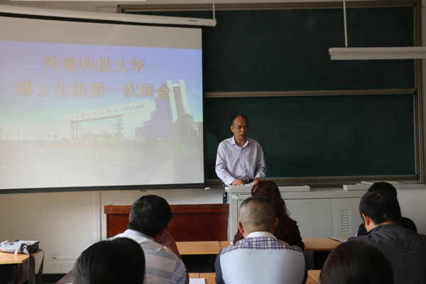 9月29日上午,我校博士生班第一次班会在工科6号楼512召开。本次班会由研究生工作部部长王晓梅教授主持,研究生院院长张永振教授、培养科科长洪妍老师、研究生教育管理科科长陈建峰老师和2014级、2015级、2016级博士研究生参加。