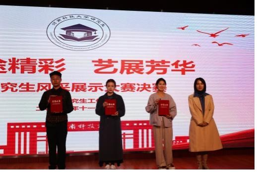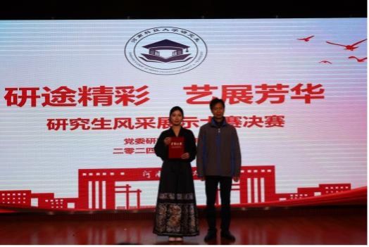 为推进校园美育浸润行动,培养和提高我校研究生的文化修养和心理素质,通过才艺的碰撞与交流,丰富校园文化生活,营造积极向上的校园文化氛围。2024年11月11日晚19:00,由河南科技大学党委研究生工作部主办,校研究生会承办的2024—2025学年“研途精彩,艺展芳华”研究生风采展示大赛决赛在开元校区医学教师发展中心顺利举行,本次大会邀请党委本科生工作部思想教育科科长张晓洁老师、化学化工学院就业工作办公室主任王梦真老师、校心理健康中心宋佳璐老师、党委硏究生工作部思政教育科科长陈洁老师、艺术与设计学院张乐老师、艺术与设计学院史雅文老师出席并担任评委。