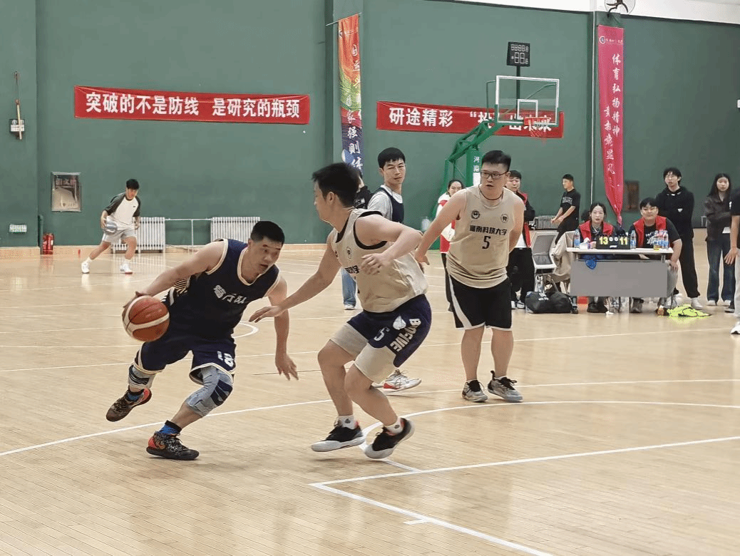 本次比赛采用半场4V4篮球赛制,设置小组循环赛和淘汰赛两个阶段。师生混合组队成为赛事最大亮点,生动诠释了本次比赛的导学氛围——“从实验室到篮球场,我们都是最佳拍档”。赛场上,导师们运球稳健、指挥若定,研究生们突破犀利、配合默契,精准的三分远投、巧妙的传切配合、激烈的篮上争夺轮番上演,场边观众的加油声、欢呼声此起彼伏。“和导师并肩作战的感觉很特别,不仅增进了感情,更感受到了团队的力量!”一位参赛研究生在赛后激动地表示。