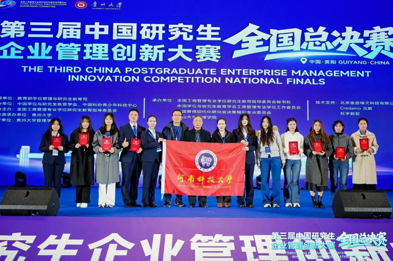 近日,第三届中国研究生企业管理创新大赛全国总决赛在贵州大学圆满落幕,我校由商学院田广通、王凤科老师指导的研究生团队“风生水起队”(成员:姬佳音、孙菽悦、白一茗)、“book思议队”(成员:李美洁、徐雨鑫、王若涵)荣获企业决策赛道一等奖,由徐会杰老师指导的研究生团队“MTN迭代先锋社”(成员:宁梓含、张曼、邢婉婷)荣获商业分析与实践赛道一等奖,实现了在国赛成绩的新突破。