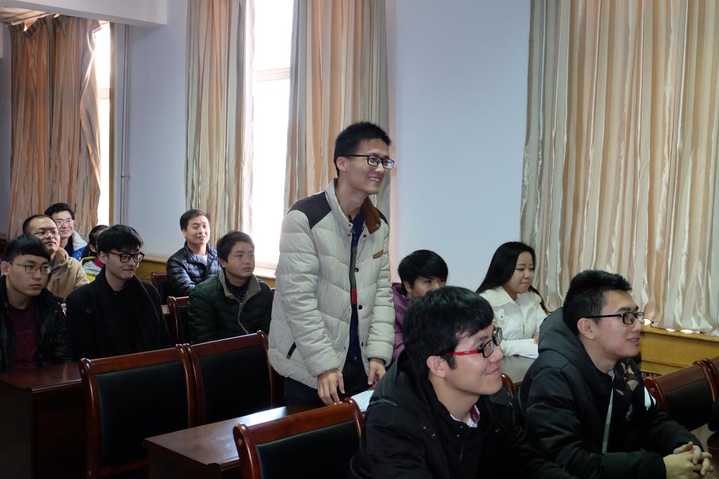 在热烈的掌声中,马磊开始了学术思维的交流与传递。他阐述了思考之于研究生的重要意义,并通过自身经历指出“勤于思考是当代研究生的必备素质”。他与大家分享了自己在不同学科和不同角度中对数字、公式、哲学方面的独到见解并加以论证,深入浅出地呈现了一场有理有据的学术报告。最后,他本着“授人以鱼,不如授人以渔”的宗旨,向大家传递了他在学术方面申请专利的心路历程,并鼓励大家在生活和科研中养成“思考、总结、创新”的思维模式。其间,听众们热情饱满,掌声不断。此外,互动交流环节将此次学术沙龙的氛围推向高潮。在场研究生踊跃提问,马磊真诚而又不失幽默的回答让全场听众受益匪浅、收获颇丰。
