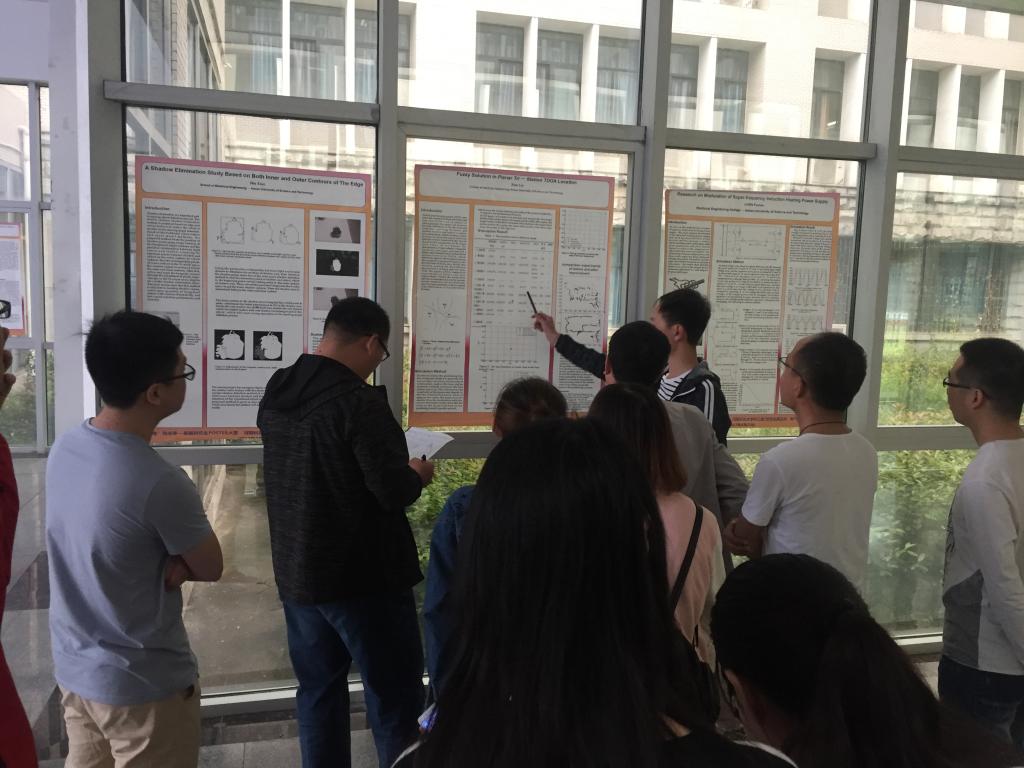 本次大赛通知发出以来,受到了全校师生的广泛关注。经作品征集、专家初评,遴选出18件作品进行现场展示,参赛学生就各自参赛的Poster进行了讲解,详细介绍课题的研究成果并解答评委提出的关于研究思路、方法等问题,与现场师生积极探讨课题研究内容。评审专家根据作品学术研究水平的体现、海报的美感与艺术、创意理念与设计效果、现场汇报交流情况等因素,对作品进行了评选。最终,电气工程学院谭孝江同学获一等奖,韩文琳、徐巧菲获二等奖,另有4项作品获得三等奖,5项作品获得优秀奖。