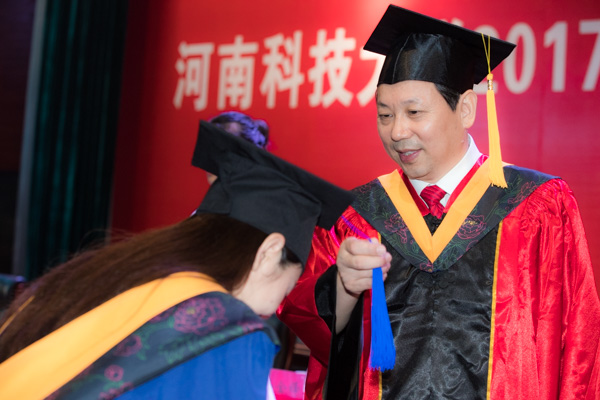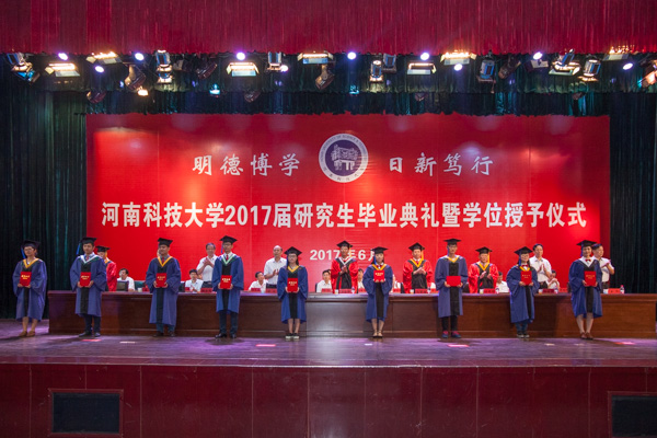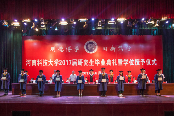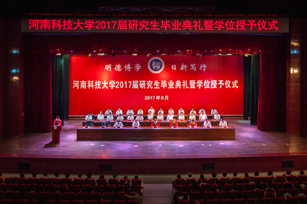 宋书中副校长宣读《河南科技大学关于2017届硕士研究生毕业资格审查情况及学位授予的决定》,李漪副书记宣读《河南科技大学关于表彰2017届优秀毕业研究生的决定》,谢敬佩副校长宣读《河南科技大学关于表彰2017年研究生优秀学位论文的决定》。