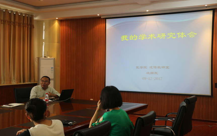 9月12日上午,党委研究生工作部“名师指路”讲座交流会在工科2号楼308会议室召开。此次邀请的主讲嘉宾是近日以第一作者在国际顶尖期刊Nature子刊《Nature Structural & Molecular Biology》(自然-结构与分子生物学,2016年影响因子:12.595)发表研究论文的青年学者、医学院副教授沈国民博士,我校全体博士生参加,研工部教育管理科科长陈建峰主持活动。