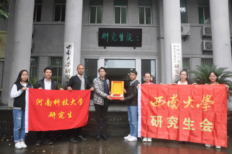 2017年10月我校研究生会代表赴重庆、四川部分高校研究生会调研学习活动圆满结束。此次调研团队由河南科技大学研究生会主席魏斐带队,研究生会常务副主席李阳、副主席张亚桥和办公室副主任王小敏参加。调研团队先后与西南大学、重庆大学、西南交通大学、四川大学、电子科技大学五所高校的研究生组织进行对接,针对研究生会自身建设、创新创业活动等进行了座谈交流,收获颇丰。