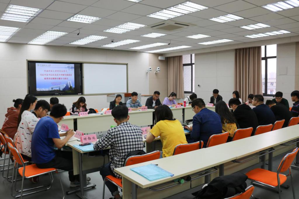 按照教育部党组《关于教育系统深入学习贯彻习近平总书记在北京大学师生座谈会上重要讲话精神的通知》和校党委《关于深入学习贯彻习近平总书记在北京大学师生座谈会上重要讲话精神的通知》要求,5月19日上午,党委研究生工作部在农医教学楼614录播室召开研究生专题座谈会,深入学习研讨习近平总书记在北京大学师生座谈会上重要讲话精神。党委研究生工作部副部长张静和研究生骨干代表参加,研究生教育管理科科长陈建峰主持。