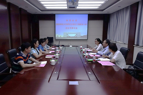 5月28日,陕西科技大学研究生院院长任工昌教授一行3人来我校考察交流。下午在开元校区博园第二会议室召开座谈交流会。党委研究生工作部部长王晓梅、研究生教育管理科科长陈建峰、研究生培养科科长洪妍参加,座谈会由研工部副部长兼研究生院副院长张静主持。