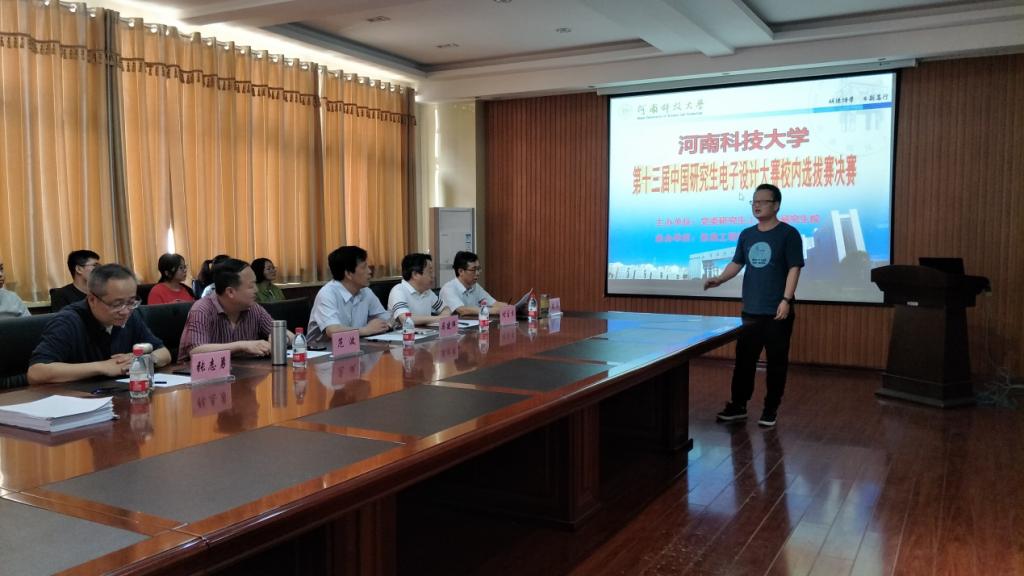 5月31日下午,由党委研究生工作部、研究生院主办,信息工程学院承办的 “第十三届中国研究生电子设计竞赛”校内选拔赛决赛在开元校区工科2-308会议室举行。大赛经过初期专家评审委员会的严格评审,共有16支团队进入决赛。本次大赛组委会特邀软件学院院长霍华教授,信息工程学院副院长付主木教授、副院长马建伟教授,计算机系主任张志勇教授,自动化系主任范波副教授担任评委。选拔赛由信息工程学院研究生辅导员彭勃主持,来自各学院的参赛队全体成员参加了比赛。