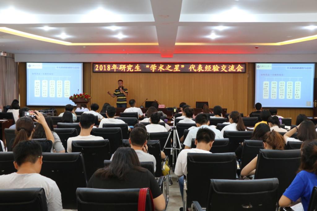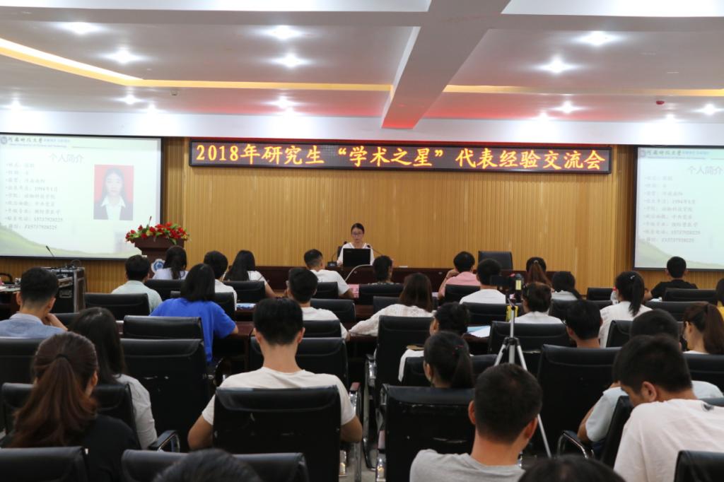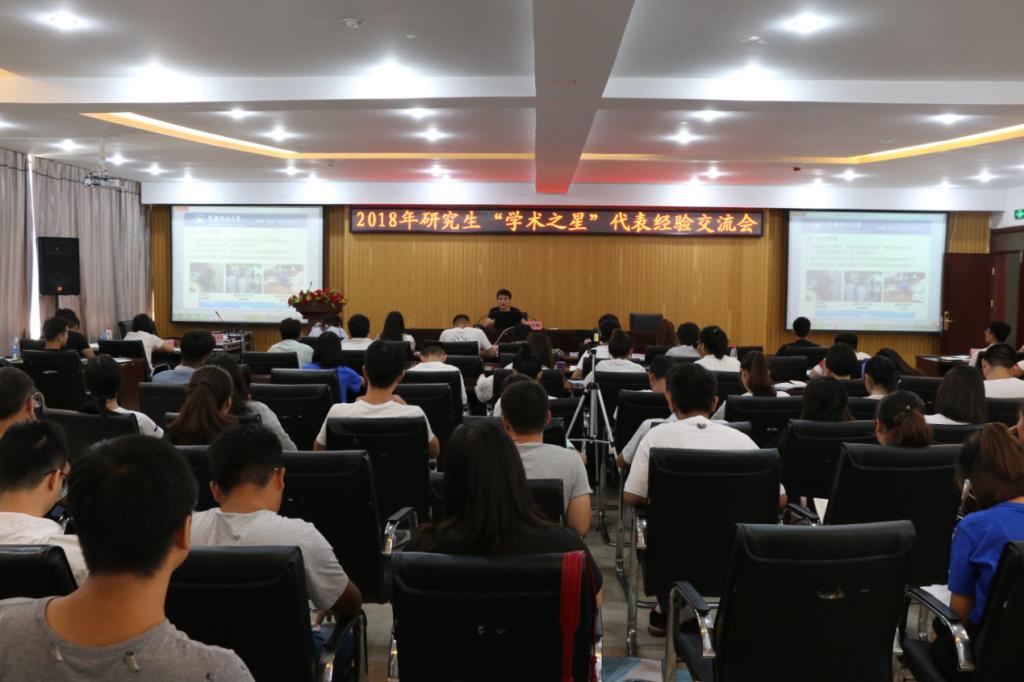 9月4日上午,我校研究生“学术之星”经验交流会在工科1号楼5059报告厅举行。第二届研究生“十佳学术之星”获得者物理工程学院2016级研究生马海祥、动物科技学院2016级研究生赵文鹏、张聪与百余名研究生畅谈学术科研感悟,交流提高研究水平经验。交流会由2017级管理学院研究生魏蕊蕊主持。