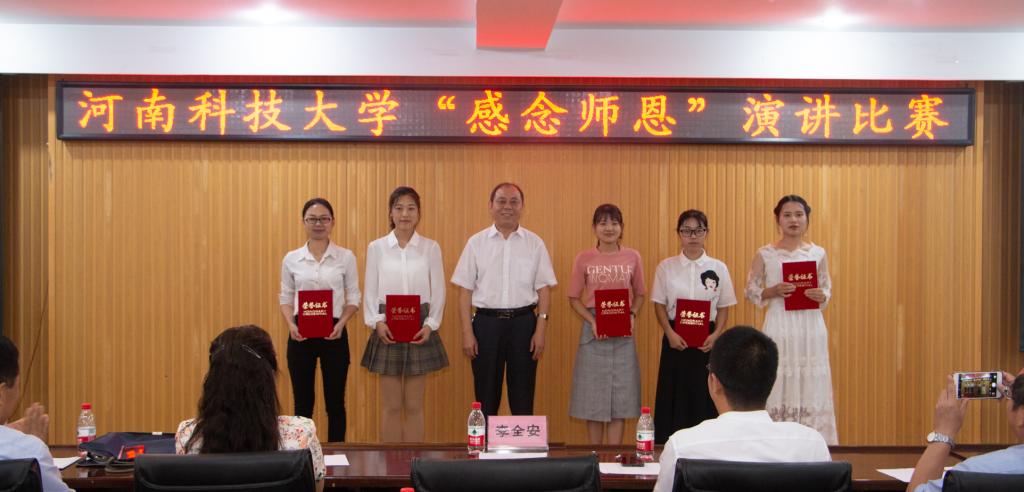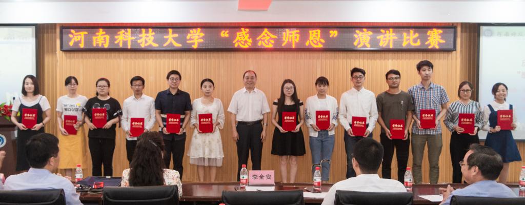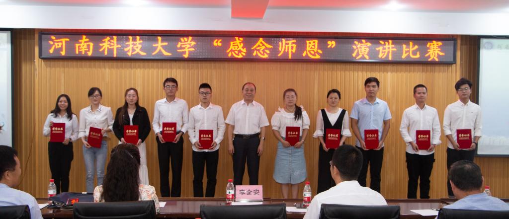 李全安副校长为获奖选手颁奖并讲话。他向担任评委的老师致以诚挚的谢意,向获奖学生表示衷心的祝贺。他指出,教师是承载高校人才培养、科学研究、社会服务、文化传承创新、国际交流合作等五大重要使命的根本动力,希望全校教师弘扬高尚师德,爱岗敬业,善于学习,勇于创新,做“四有”老师的表率;希望同学们通过“感念师恩”演讲比赛等活动,常怀感恩之心、常做感恩之事,以优秀教师为榜样,不断加强自身道德建设,在河科大学有所获、学有所悟、学有所成,成为国家的优秀人才。