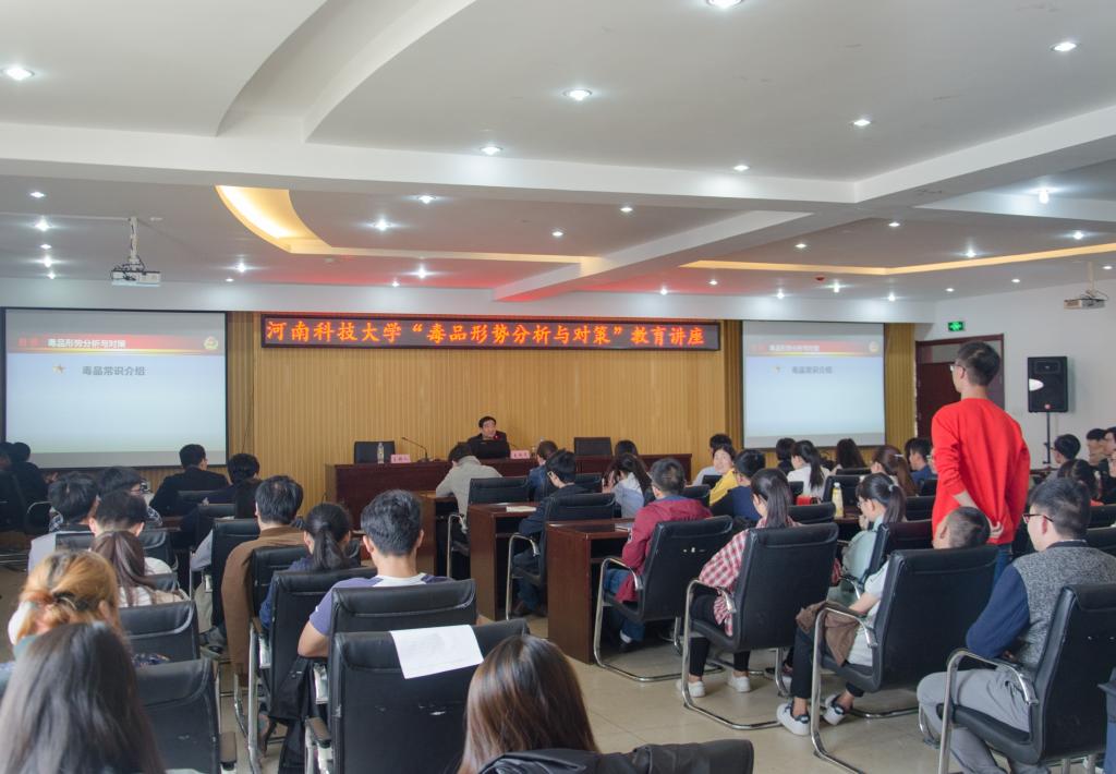 4月14日下午,洛阳市公安局犯罪侦查局禁毒支队政委王利民在工科一号楼5059室为我校研究生做了一场 “毒品形式分析与对策”教育专题讲座,校院研究生会干部、各培养单位研究生代表等120余人一起听取了讲座,讲座由校研究生会主席魏斐主持。