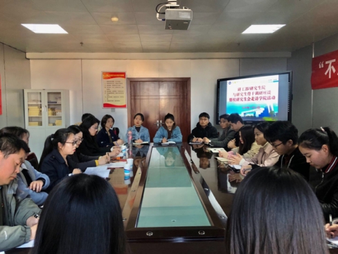 2019年11月13日下午,研工部/研究生院开展的研究生调研座谈暨校研究生会走访学院活动(第二期)在开元校区文科楼一号楼702会议室举行。党委研究生工作部副部长张静老师、研究生院学位办公室主任王云老师、招生办公室副主任蔡羽老师、质量与发展科顾小清老师、校研究生会主席团成员和来自人文学院、法学院、马克思主义学院、医学院、外语学院、经济学院、管理学院、体育学院研究生骨干参加会议。会议由校研究生会主席团成员刘哲同学主持。