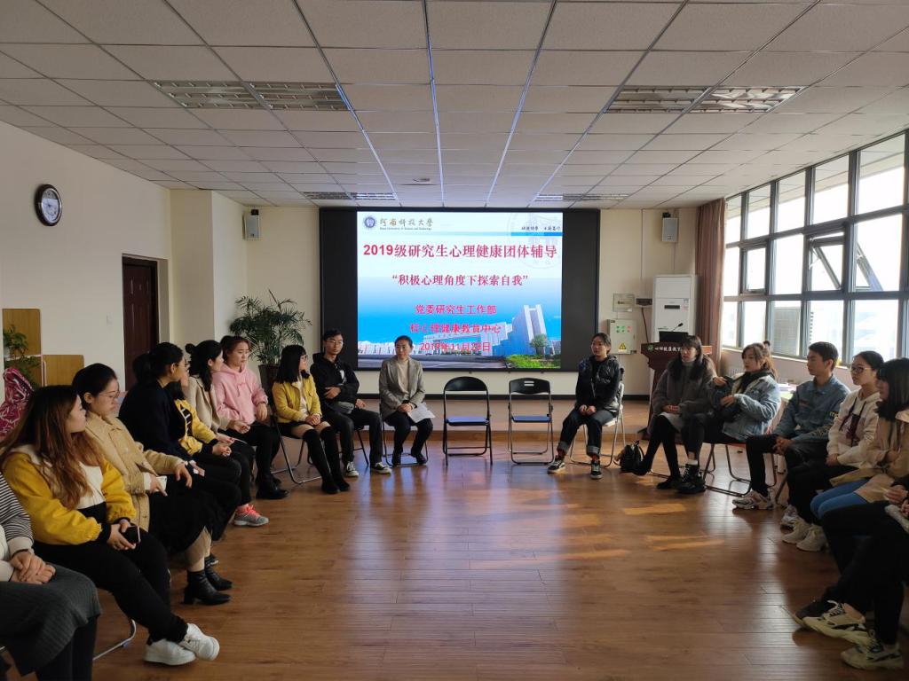 11月23日上午,由党委研究生工作部、校心理健康教育中心联合举办的“积极心理角度下探索自我”研究生心理健康团体辅导在我校心理健康中心举行。校心理健康教育中心毛俊青老师对研究生心理委员联合会成员、2019级研究生心理委员及班级负责人进行了辅导。