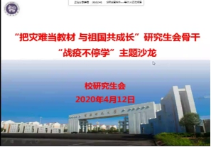 为进一步引导广大同学把灾难当教材、把困难当磨砺,做到在灾难面前与国家共患难、与人民共命运、和时代同步伐,共同完成这场生命教育、信念教育、科学教育与道德教育,努力把疫情危机化为教育契机,4月12日下午,“把灾难当教材 与祖国共成长”河科大研究生“战疫不停学”主题沙龙活动顺利举办。校研究生会骨干、各学院研究生代表60余人参加主题沙龙活动。活动由校研会主席团成员裴林玉主持。