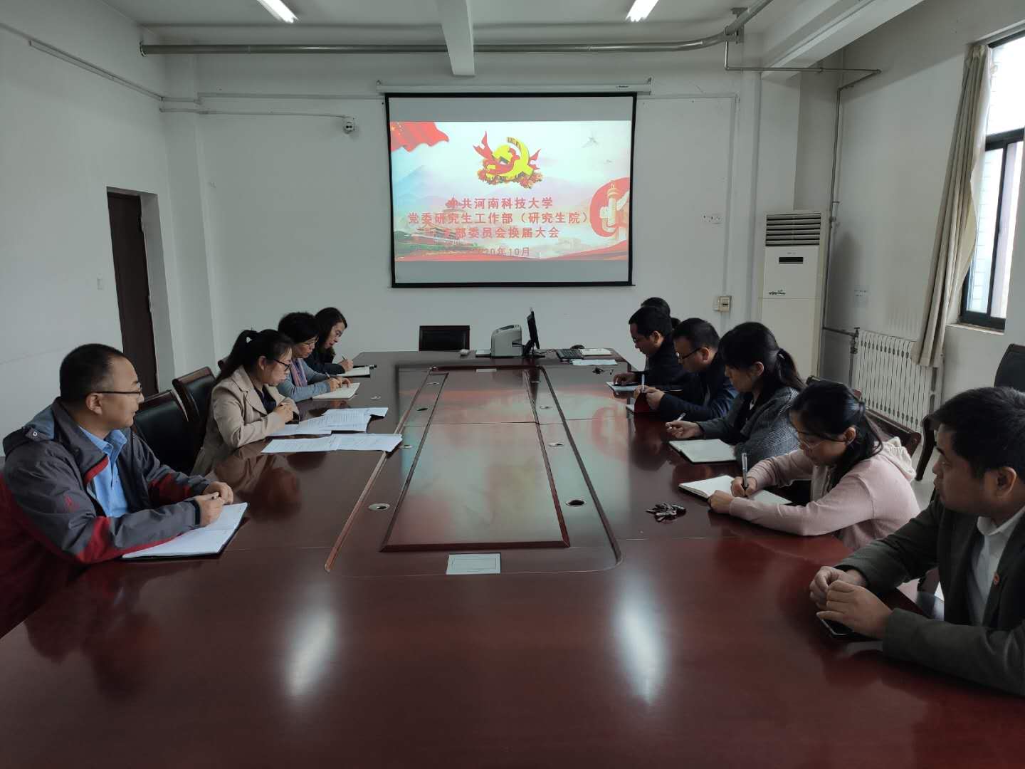 为加强学校基层党组织建设,按照学校党委统一部署,根据《关于做好机关(直属单位)党支部换届工作的通知》的要求,10月14日上午11点,在致远楼508室召开中共河南科技大学党委研究生工作部/研究生院支部委员会换届大会。大会由原支部书记张静主持,研工部/研究生院全体党员参加会议。