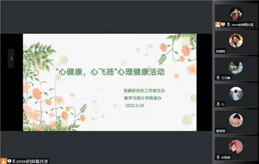 3月24日,数学与统计学院通过线上直播的形式开展了“心健康,心飞扬”主题活动。通过观看电影和心理测试的方式,帮助同学们走出心理误区,减少内心矛盾,学会处理、改善人际关系,更好的适应现代生活、学习节奏,给同学们提供了一处心灵栖息的天地。