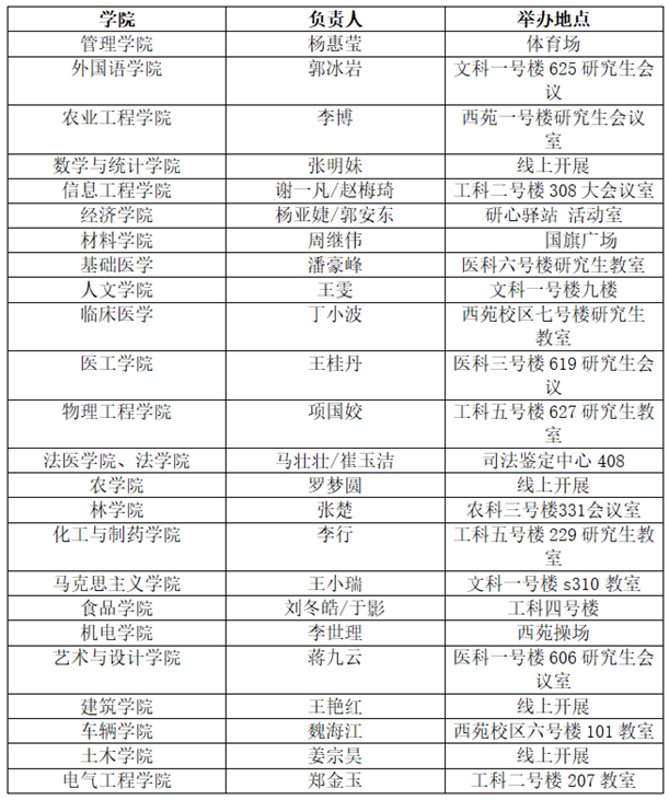 为了减轻研究生科研压力,构建丰富多彩的生活,增强研究生的自我心理保健意识,养成正确的心理健康观念,培养健全的心理素质,构建和谐校园。各学院在研工部的安排和心理联合会、心理委员的组织下开展学院特色活动。活动主题从自我发展到科研生活,包含范围广,仍有不同主题的活动在积极筹划中,欢迎大家关注并踊跃参与!