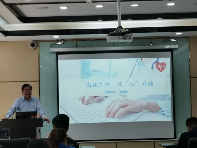 4月19日,由党委研究生工作部/研究生院主办、基础医学院承办的“学者的学术人生”报告会在医科1-204学术报告厅举行。本次报告会特邀河南大学科学技术研究院谢松强教授为我校研究生作“高效工作,从‘心’开始”专题报告,报告会由基础医学院副院长梁高峰主持。