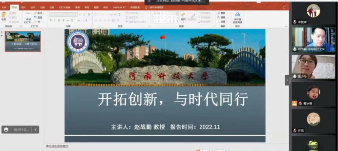 11月18日下午,由校党委研究生工作部主办、动物科技学院承办的“学者的学术人生”专题报告会采取线上会议的形式开展。动物科技学院赵战勤教授为我院研究生作“开拓创新,与时代同行”专题报告。报告会由研究生辅导员张小玲老师主持,全体2022级研究生参加。