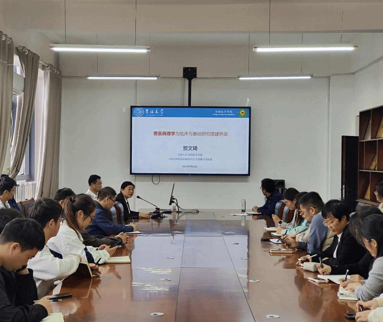 2025年9月26日上午,由校党委研究生工作部/研究生院主办、动物科技学院承办的“学者的学术人生”专题讲座,在农科2号楼336会议室举办,本次主题为“兽医病理学为临床与基础研究搭建桥梁”,由吉林大学动物医学院贺文琦教授主讲,动物科技学院院长刘玉梅教授主持,学院教师代表以及2024级全体研究生参加。