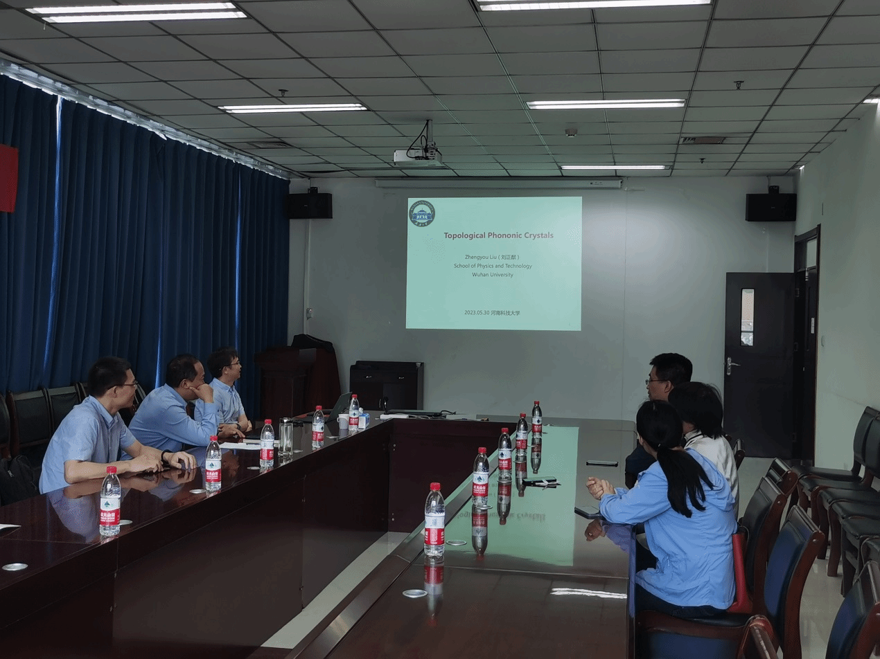 5月30日上午,物理工程学院举办的《博学大讲堂》在图书馆111会议室顺利进行,武汉大学刘正猷教授应邀到我校进行学术交流,为我校师生做题为《拓扑声子晶体》的学术报告。报告会由物理工程学院院长李新忠教授主持。