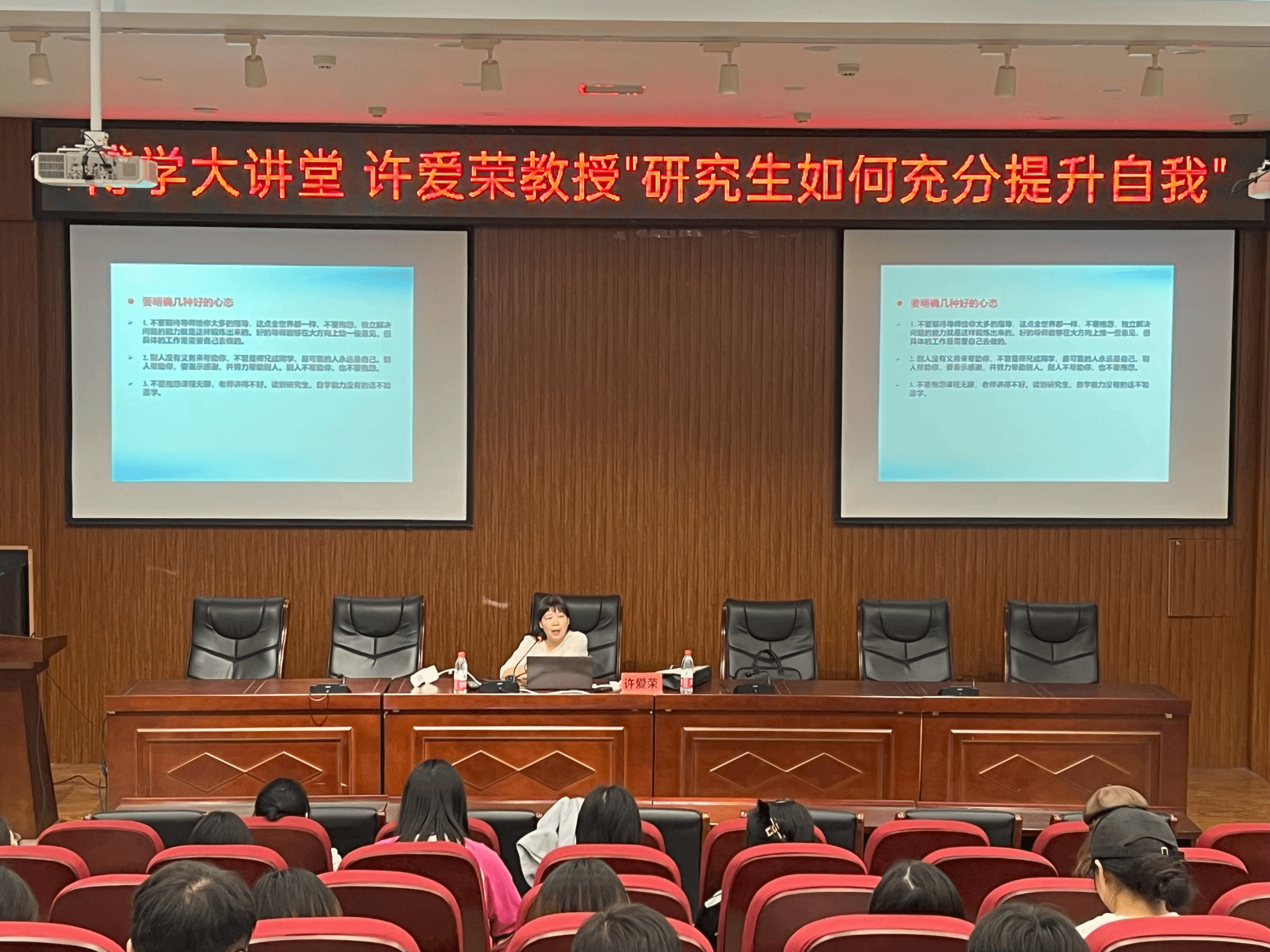 2023年9月23日下午,由党委研究生工作部/研究生院主办,化学化工学院承办的“博学大讲堂”在工科5 -112室举行。化学化工学院研究生导师许爱荣教授与研究生面对面就“读研期间如何充分提升自我”进行了深入探讨与交流,2023级全体研究生参加本次活动。