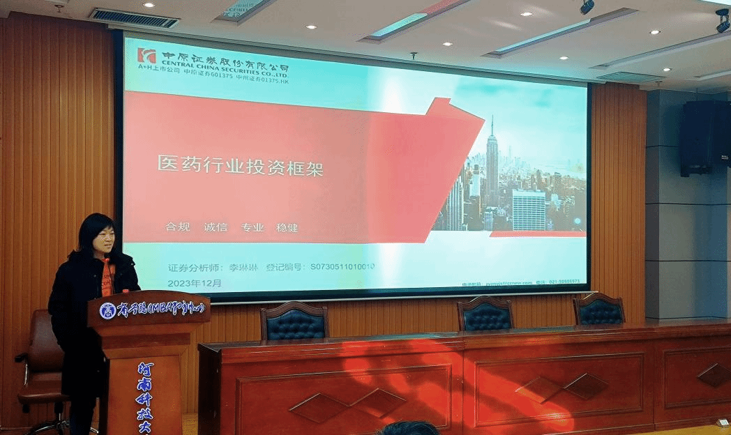 12月25日上午由党委研究生工作部主办,商学院承办的“博学大讲堂”在文科一号楼S105室举行,本次活动邀请了中原证券股份有限公司李琳琳为研究生作主题为“证券投资医药行业研究框架”的报告,报告会由商学院副院长张纪主持,2023级研究生参加。