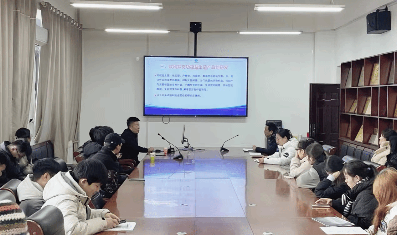 2023年12月19日下午,党委研究生工作部与动物科技学院联合主办的《博学大讲堂》在开元校区农科2号楼336会议室举行。本次讲座主题为“科技创新驱动企业高质量发展”,主讲人是洛阳欧科拜克生物技术股份有限公司总经理范收武,活动由动物科技学院党委副书记孙旭主持,研究生辅导员张小玲老师、冯莎莎老师和动物科技学院研究生参加。