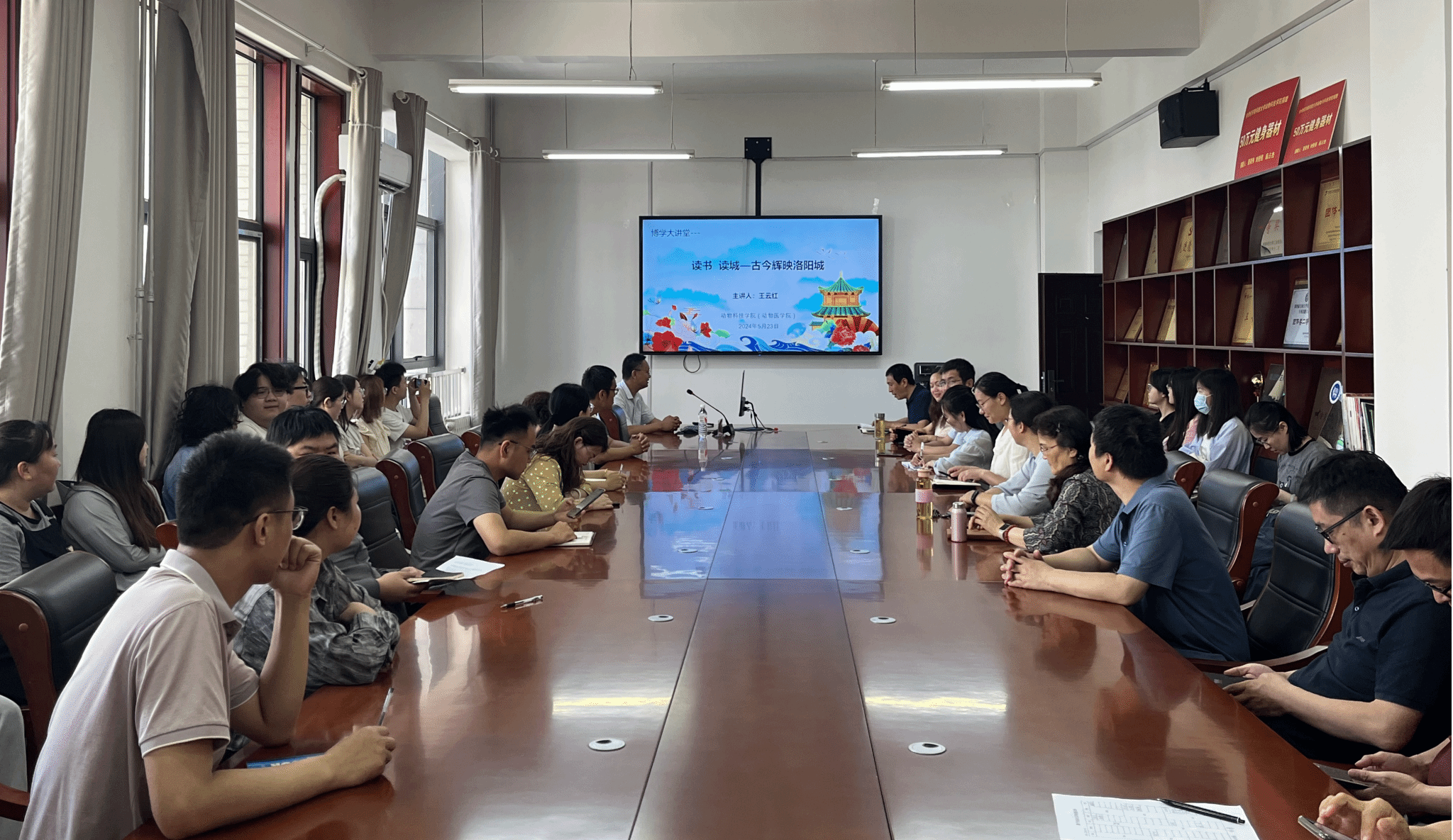 5月23日上午,河南科技大学人文学院历史系主任王云红教授应邀做客河南科技大学研究生博学大讲堂,在农科2号楼336会议室为广大师生带来了一场题为《读书 读城—古今辉映洛阳城》的精彩讲座,讲座由动物科技学院党委副书记孙旭主持。本次讲座旨在通过深入探讨洛阳的历史变迁和文化底蕴,引领师生领略古都洛阳的独特魅力。