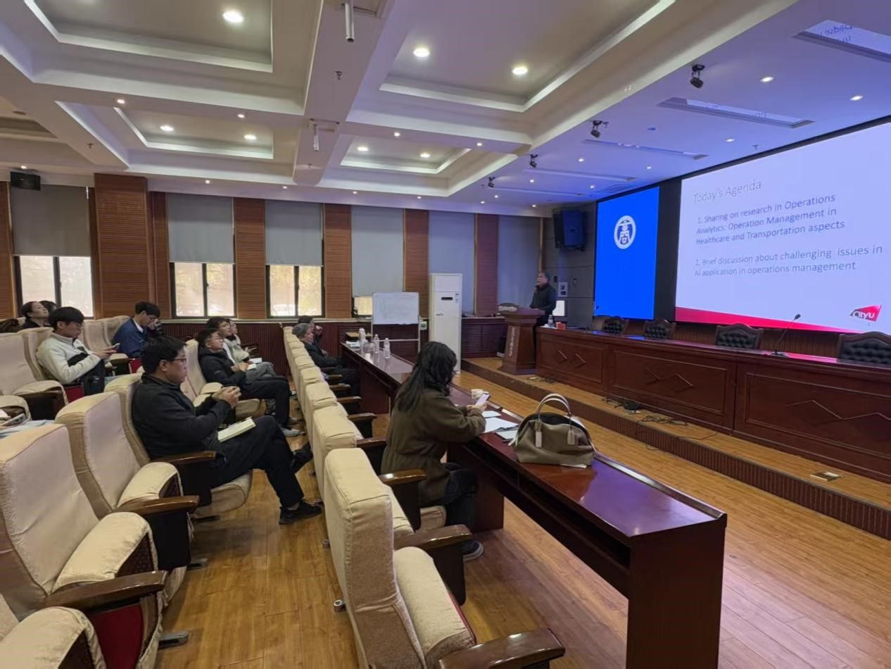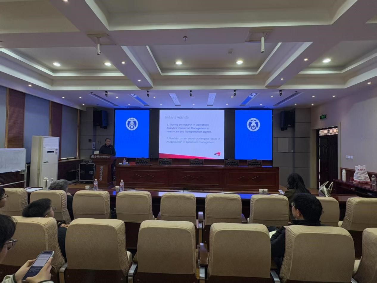 报告中,钱桂生教授围绕运营管理领域,深入剖析数据分析与人工智能的融合应用。他详细阐述了二者在理论研究层面的进展,分享了在实际运营场景中的应用案例,如电商智能推荐系统、城市智慧交通系统筹,展示其在提升运营效率、优化决策等方面的显著成效。同时,钱教授也指出当前在数据质量、人才短缺、模型可解释性等方面面临的挑战,并提出针对性的应对策略。在互动环节,钱桂生教授耐心解答师生们的提问,就运营管理中数据分析与人工智能应用的关键问题展开深入交流。此次学术报告为师生们搭建了与学术前沿对话的平台,拓宽了大家在运营管理领域的研究视野,对推动相关学科发展与学术研究具有重要意义。