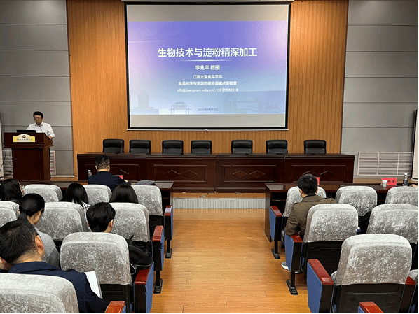 李兆丰教授围绕淀粉精深加工领域的最新研究进展,主要介绍了淀粉生物改性技术的方法和优势。李教授重点分享了其团队在淀粉生物转化、功能性糖开发、淀粉生物改性等方面的创新成果,为未来淀粉生产提供了新的思路。李兆丰教授的精彩讲解不仅让大家深刻认识到生物技术在淀粉精深加工领域的巨大潜力和广阔前景,也为我校师生在相关领域的研究提供了新的思路和方向。