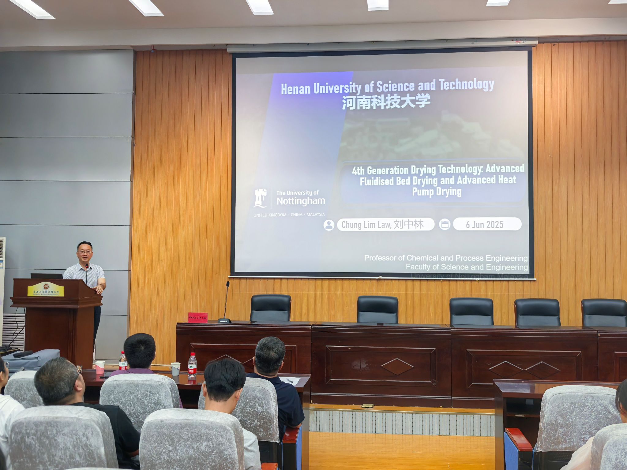 6月6日下午,诺丁汉大学马来西亚分校化学和工艺工程教授Chung Lim Law(刘中林)应邀在开元校区工科4号楼206会议室为我院师生作题为《4th Generation Drying Technology: Advanced Fluidised Bed Drying and Advanced Heat Pump Drying》的学术报告。我院相关专业教师及学生聆听了该报告。报告会由食品与生物工程学院院长任广跃主持。