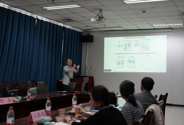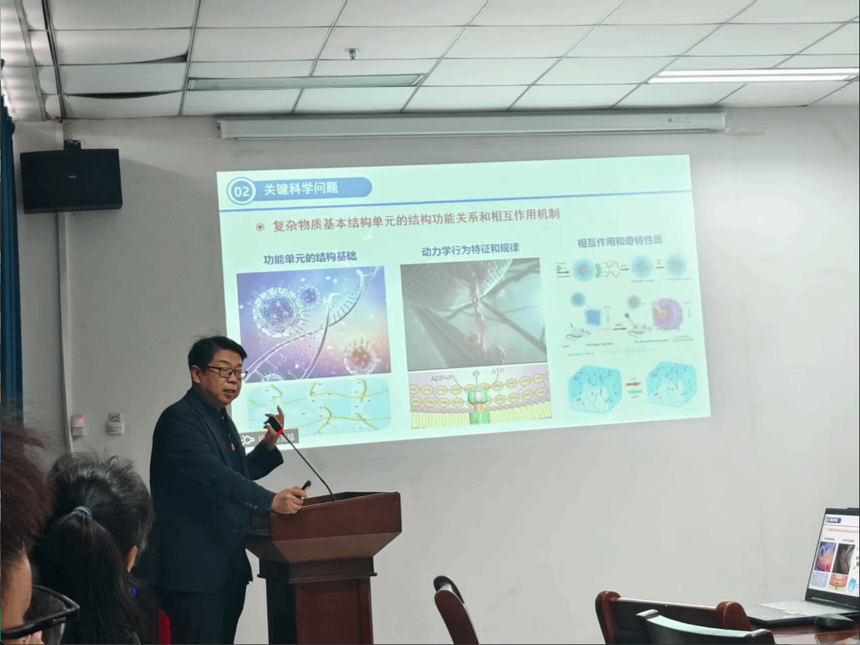 生物大分子是构成生命体系的基本组织结构,包括蛋白质、核酸、多糖等。这些生物大分子具有复杂的结构和多样的功能,是生命体系中不可或缺的重要物质。研究生物大分子结构和功能可以揭示生命活动的本质、推动医学与药物研发、促进生物技术创新,对人民生命健康具有重要意义。报告中,张胜利教授系统阐述了其课题组从物理学探索几个生物大分子结构与功能方面取得的一些进展。彭云辉副研究员则系统阐述了其课题组在核小体动力学性质和相互作用的计算研究方面取得的一些进展。核小体作为真核细胞基因组的基本包装单位,与数以百计的调控蛋白相互作用。核小体结构具有高度动态化和丰富的动力学性质。研究核小体的动力学性质和相互作用机理,对诠释基因表达、染色体重塑等生命调控过程以及癌症肿瘤等疾病的发病机理有重大意义。报告会后,彭云辉副研究员与在座师生进行了深入交流。此次学术报告不仅展现生物大分子的多维奥秘,更为材料研究注入新动能,为师生搭建触达学术前沿的桥梁。