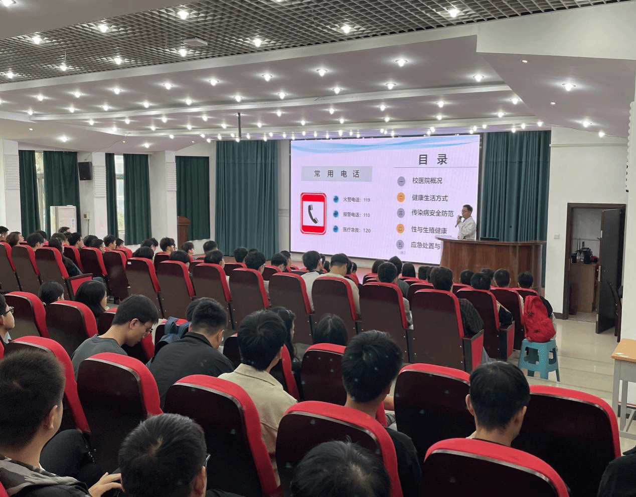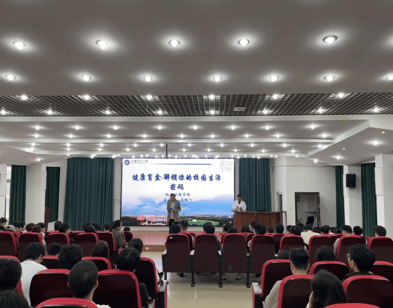 为提升新进研究生对个人身体状况的认识水平,强化他们对自我关注与管理的能力,2025年9月29日上午9时30分,机电工程学院于河南科技大学西苑校区南十学术报告厅举办了一场题为“健康盲盒:解锁你的校园生活密码”的讲座。本次讲座由我校校医院预防保健科科长王鹏飞老师主讲,辅导员王辰主持,2025级硕、博在校研究生积极参加。
