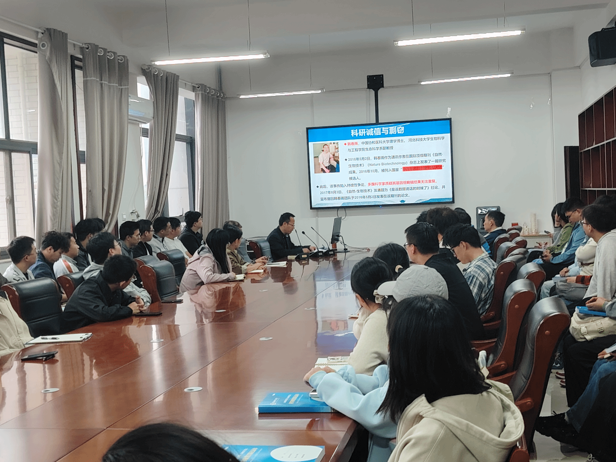 10月9日下午,由河南科技大学党委研究生工作部/研究生院主办、动物科技学院(动物医学院)承办的“博学大讲堂”活动在开元校区农科2号楼336会议室举办。本次活动邀请动物科技学院副院长杨又兵教授作主题为“以严谨记录筑根基—研究生学术诚信与导师责任同行”的讲座,由学院研究生工作办公室主任冯莎莎老师主持,学院全体2025级研究生参加。