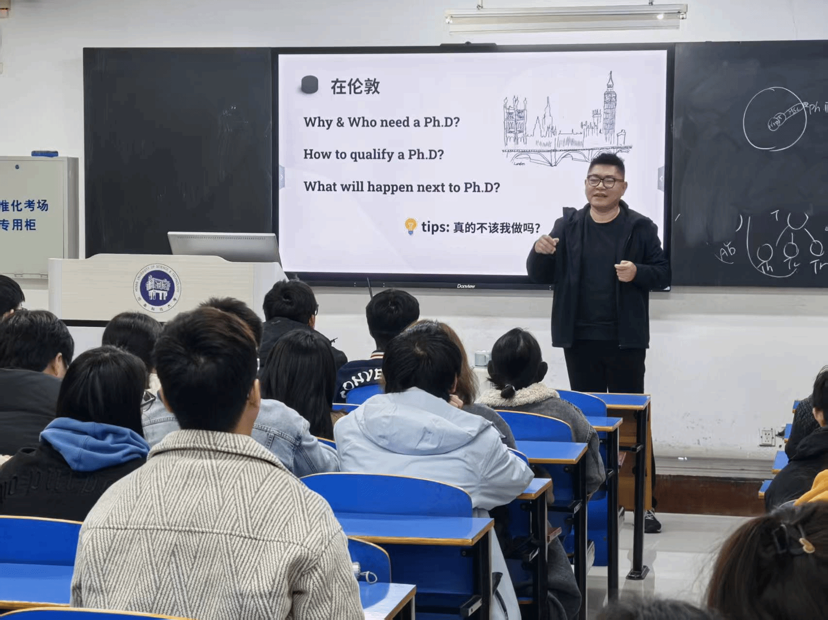 高嘉屿教授介绍了本科母校的悠久历史与人文底蕴,并坦言自己当前的科研方向与本科专业并非完全对口,但他指出,跨专业背景所带来的是一种独特的“跨学科思维”优势,这恰恰是未来科研创新的宝贵财富。随后,高教授以《论语》中的经典名句“不患无位,患所以立;不患莫己知,求为可知也”作为切入点,生动风趣地分享了自己人生关键节点的选择,以及远赴海外深造期间,在文化冲击与学术压力下,如何坚守初心、克服困难的宝贵经历。最后,高教授指出了当前研究生中普遍存在的“不知道自己要做什么,也不知道为什么这么做” 的现象,建议同学们要明确自己的目标和计划,主动思考。此次讲座,让研究生们对如何规划研究生生涯、培养主动科研精神有了更深刻的感悟。