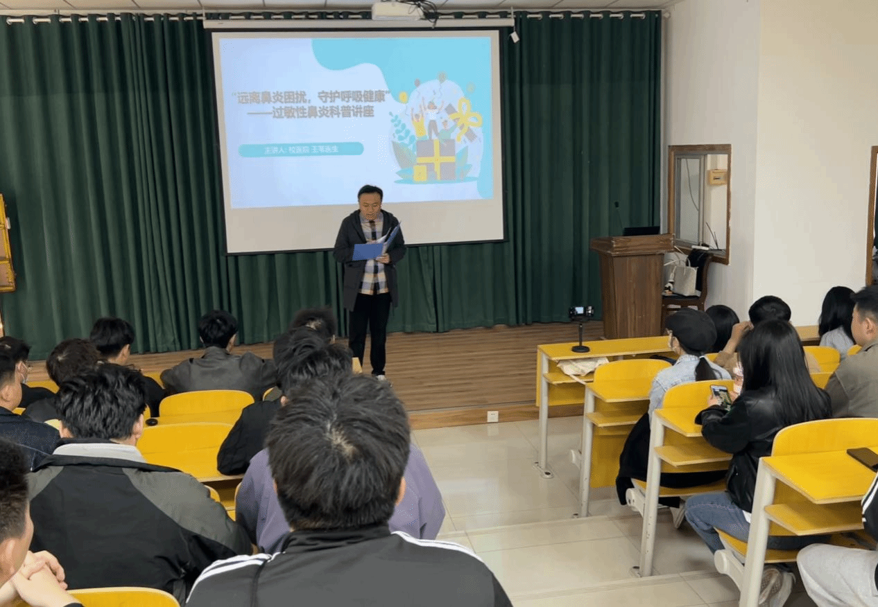 活动伊始,王老师首先结合研究生群体长期接触电子设备、作息不规律的特点,用通俗生动的语言层层剖析了过敏性鼻炎的发病机理、典型症状及常见诱因。接着,她贴合日常生活的案例,清晰区分了过敏性鼻炎与普通感冒的差异,打破了传统观念“鼻炎无需重视”“偏方可根治”的认知误区。最后,王苇老师耐心解答了大家关于各类鼻炎的相关疑问,现场氛围热烈融洽。