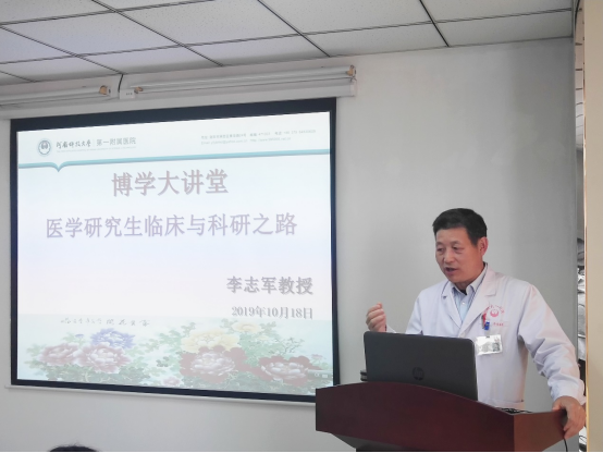 10月18日下午,临床医学院李志军教授应邀做客研究生博学大讲堂,为我校研究生作题为《医学研究生临床与科研之路》的专题讲座。讲座由临床医学院研究生辅导员穆恺主持。