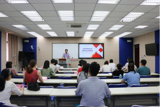 6月15日上午,经济学院院长刘溢海教授应邀做客研究生博学大讲堂,为我校研究生作题为《2019年经济形势回顾分析及中央经济工作会议精神解读》的专题讲座。研究生教育管理科科长陈建峰老师、第二期“领头雁”研习班全体成员参加,讲座由食品学院2018级研究生贺健主持。