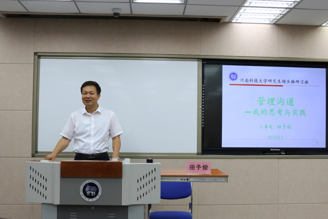 6月1日上午,人事处处长田子俊应邀做客研究生博学大讲堂,为研究生骨干作题为《管理沟通—体会与实践》的专题报告。研工部副部长张静、第二期“领头雁”研习班全体成员参加,报告会由法医学院2018级研究生齐锦佩主持。
