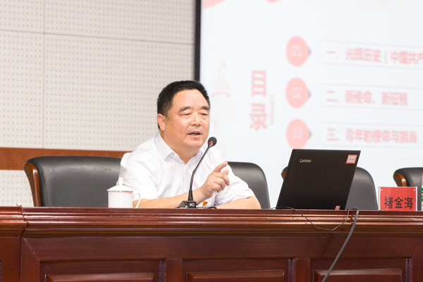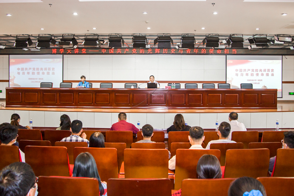 校新闻中心讯 9月24日下午,校党委副书记褚金海做客研究生博学大讲堂,在图书馆522报告厅,以《中国共产党的光辉历史与青年的使命担当》为题为研究生讲授了一堂别开生面的思政课。党委研究生工作部、研究生院全体人员和研究生党员骨干代表三百余人参加学习活动。学习活动由党委研究生工作部部长刘素芹主持。